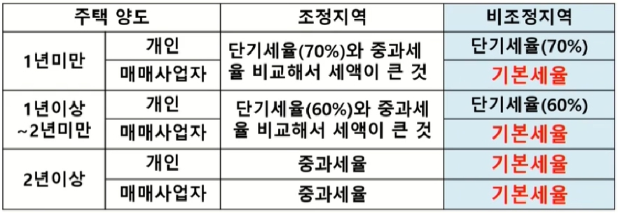 3) 부동산 취득 후 단기양도 시 시에도 기본세율을 적용받을 수 있다.