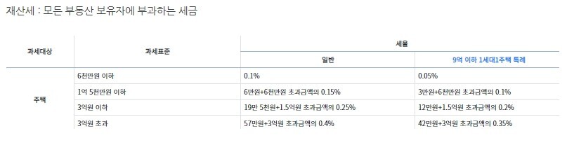 ※ 1세대 1주택자는 기준시가 9억 원 이하면 소득의 크기에 관계없이 비과세가 적용됨