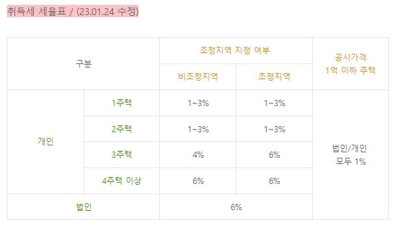 < 취득세 > 22.12.21 발표된 취득세 중과 완화 적용된 내용임
