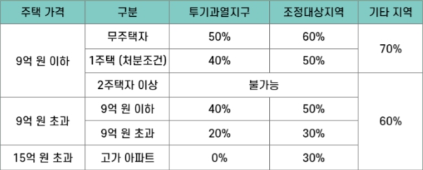 즉 집값대비 얼마의 대출이 나오냐